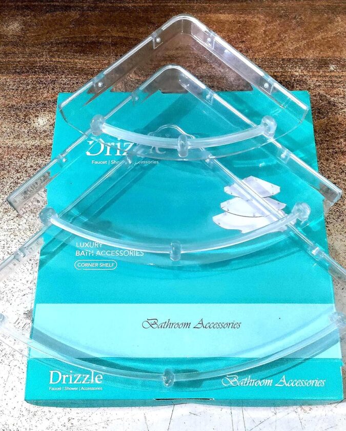 DRIZZLE Corner Shelf Super Clear | Unbreakable Transparent Bathroom Shelves | Multipurpose Use (Size 7 inch, 9 inch, 11 inch) - Set of 1 (3 Pieces)